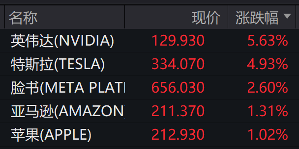 大型科技股多数上涨。 特斯拉涨近5%,奈飞、Meta涨超2%,、亚马逊、英特尔涨超1%,谷歌小幅上涨。