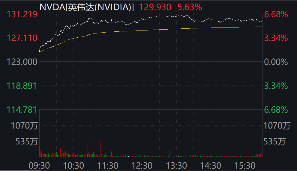英伟达单日暴涨5.63%,收于2月27日以来的最高水平。